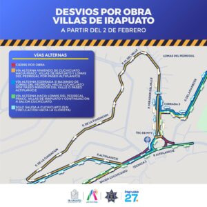 La circulación hacia Villas de Irapuato se mantendrá por el cuerpo sur, desde el Río Silao hasta la glorieta. Quienes se dirijan a Cuchicuato continuarán por el mismo cuerpo sur hasta el semáforo.
