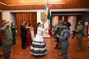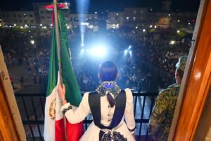 Como parte de la conmemoración, se recibió el Fuego Simbólico de la Independencia y, en punto de las 23:00 horas, la presidenta municipal, Lorena Alfaro García, encabezó el tradicional Grito de Independencia, acompañado de un espectáculo de juegos pirotécnicos y el repique de campanas como símbolo de libertad.