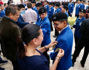 “Hoy celebramos el espíritu de superación, el esfuerzo constante y la entrega de alumnas y alumnos ascendidos del Bachillerato Bivalente Militarizado. La insignia que hoy reciben simboliza largas horas de estudio y de retos superados. Es un logro que han ganado con disciplina y mérito, pero también es de quienes han estado a su lado todos los días, sus maestros, sus compañeros y principalmente sus familias”, destacó.