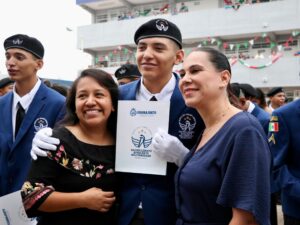 El evento fue encabezado por la alcaldesa Lorena Alfaro García, autoridades educativas estatales, funcionarios municipales, así como de madres y padres de familia, quienes, junto a los cadetes, celebraron este importante logro.